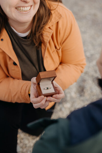 I’ll blend in as another traveller or landscape photographer so your partner has no idea what’s coming. We’ll pick a location where it’s perfectly normal for me to be taking photos, and when you give the pre-arranged cue (something simple, like asking me to take a photo on your phone), I’ll be ready to capture the whole sequence — from the moment you ask to the happy tears and laughter afterwards.